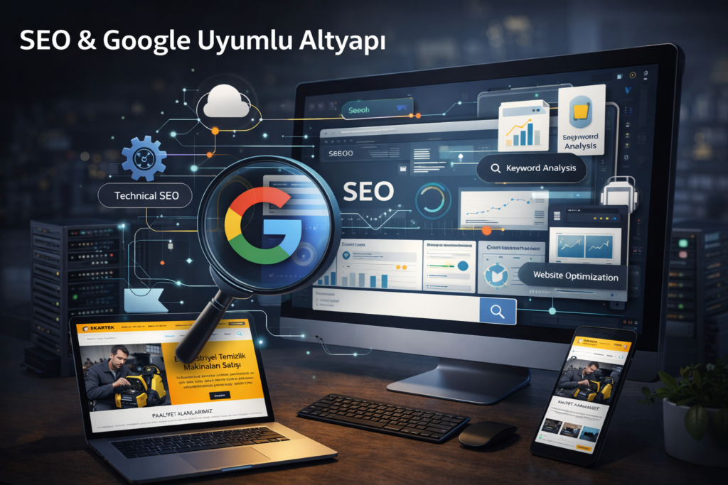 Web sitenizi Google’a sonradan anlatmaya çalışmıyoruz, en baştan Google’a uygun inşa ediyoruz. Teknik SEO, site hızı, içerik yapısı ve doğru anahtar kelime kurgusu ile arama motorlarında kalıcı ve sürdürülebilir görünürlük sağlıyoruz.