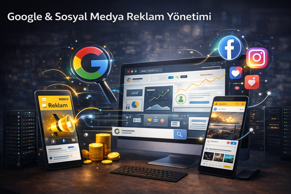 Google ve sosyal medya reklamlarını web sitenizle entegre şekilde kurguluyoruz. Reklamdan gelen ziyaretçilerin dönüşüm takibini ve veriye dayalı optimizasyonu sağlayarak reklam bütçesinin gerçek sonuç üretmesine odaklanıyoruz.