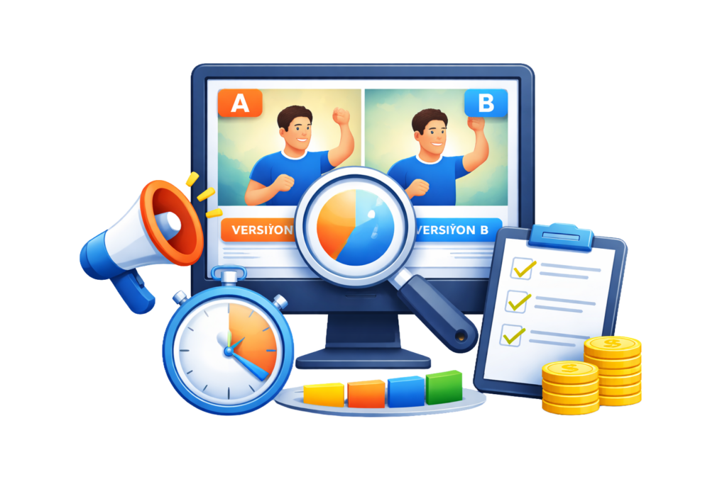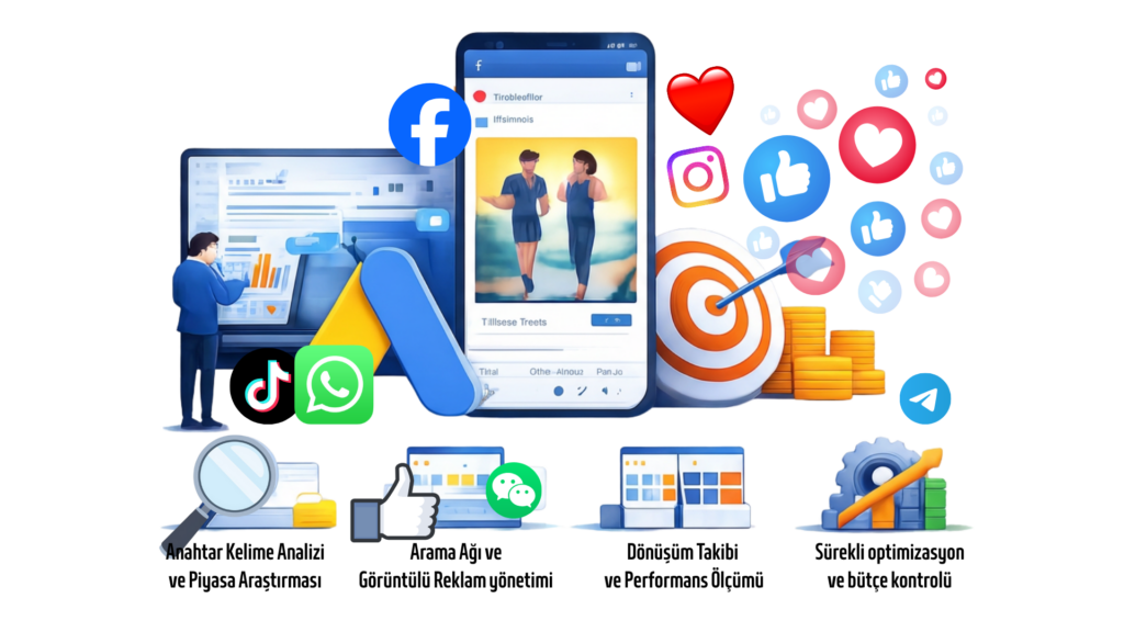 Reklamları yayına alır, farklı varyasyonları test ederek en iyi performansı veren yapıyı tespit ederiz.